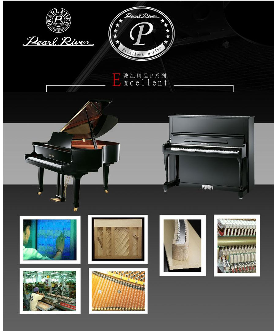 (請認準左鍵側木上的珠江精品P系列鋼琴標志)